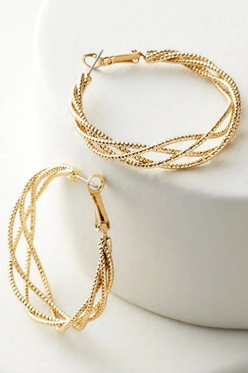 Beautifully braided with eye-catching sparkle, these gilded hoops add elegance to any outfit. The hinge backing makes them easy to put on and take off, while also keeping them secure as you go about your day.