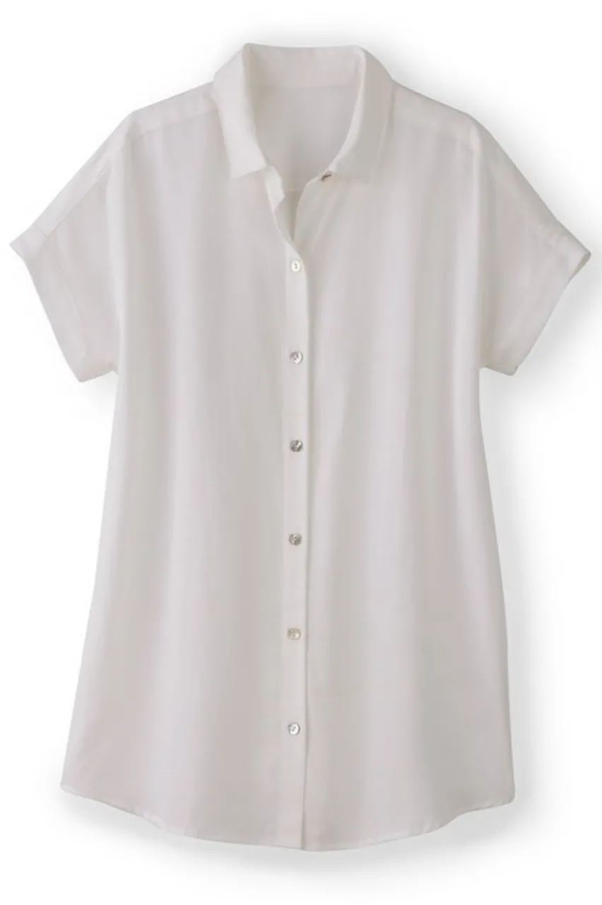 Clean minimalism is all about understated ease and this top, a longtime Soft favorite, has it in spades. This button-front shirt in pure TENCEL™, a lighter weight, drapier, softer version of denim, has a relaxed attitude with dropped shoulders and a casual curved hem. TENCEL™ is a trademark of Lenzing AG.