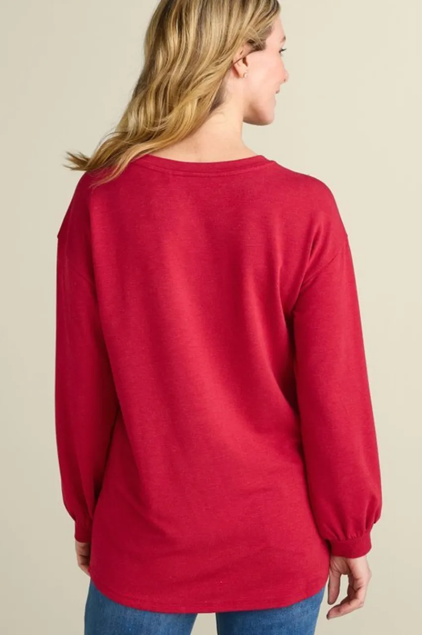 Supremely soft and cute as a… decorative buttons adorn the left shoulder of this drop shoulder, long sleeve style. It’s the sweatshirt in you can wear out and about running errands and still look great. Or cuddled up on the couch with a good book your options are endless.
