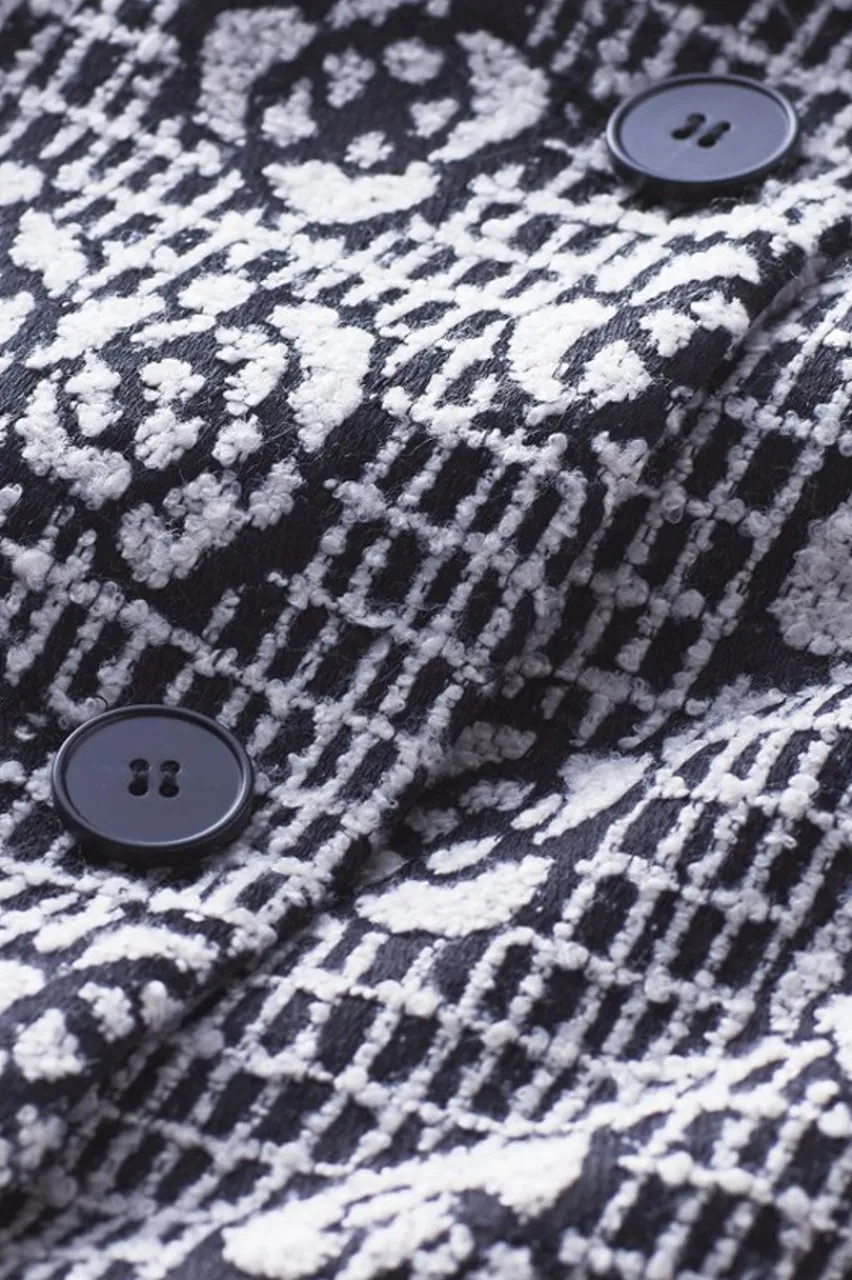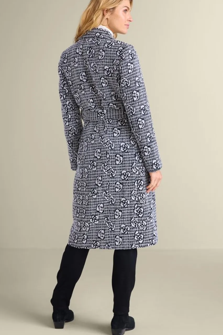 It’s all moonlight and roses in this elegant jacquard coat. It blends the soft-yet-substantial touch of a boucle sweater with a longline silhouette to lock in the warmth. The collar, buttons and belt further refine the tailored look. Comfortably lined and finished with pockets.