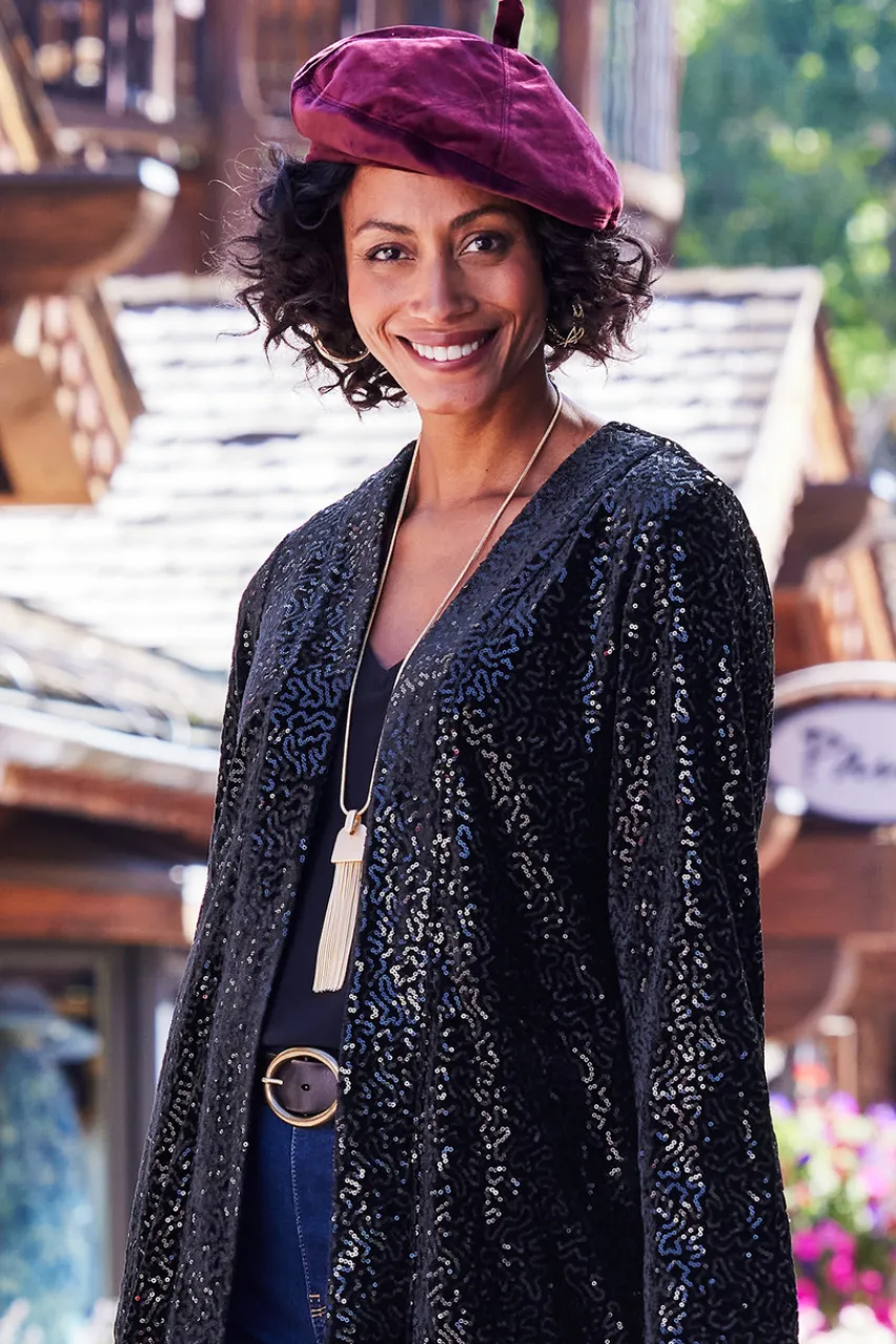 Complete any winter outfit with the artful splendor of a velvet beret. Adjust the inside tie for the perfect fit and feel tres chic.