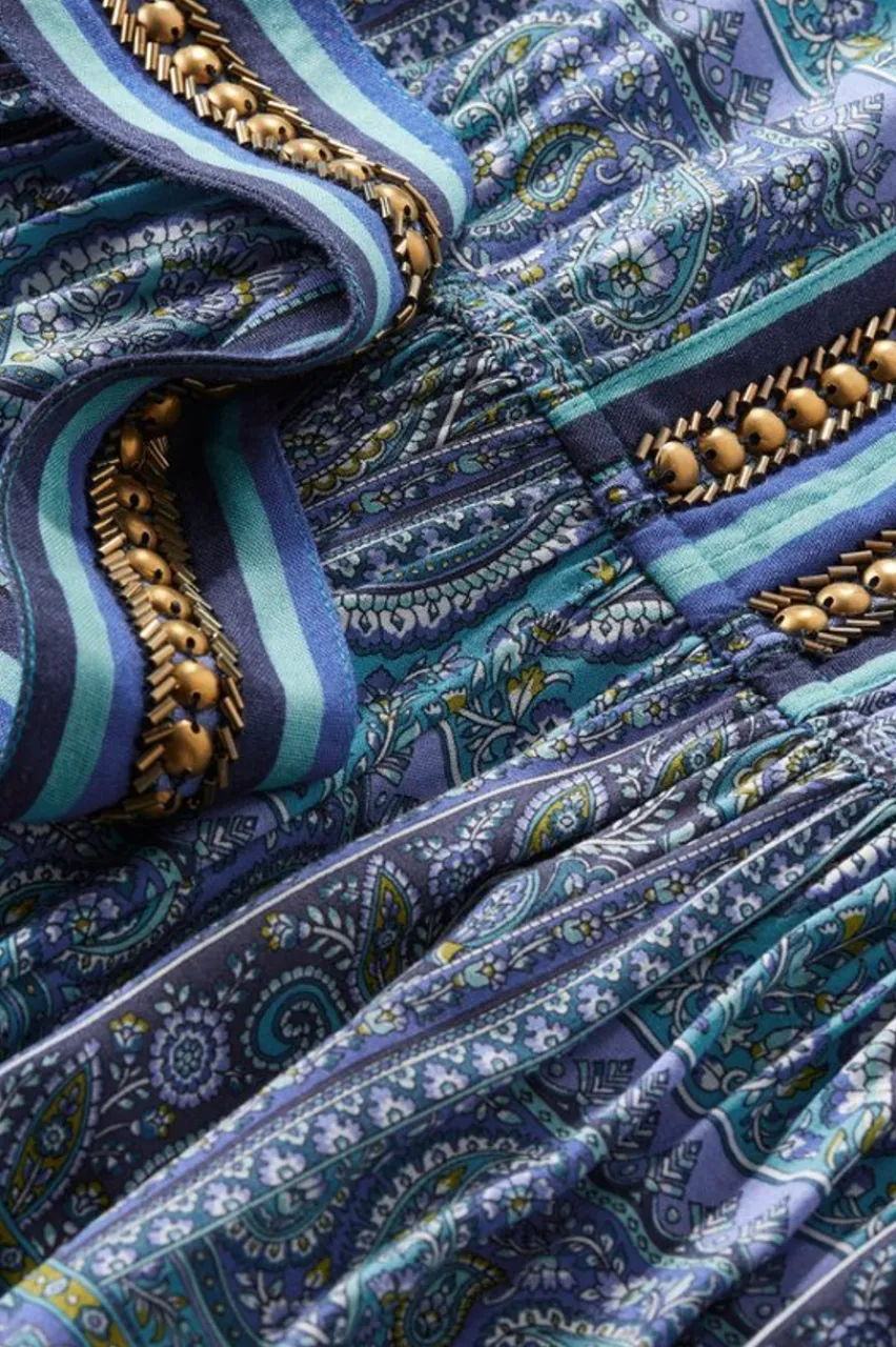 This soft and drapey maxi is absolutely patch-perfect and shines bright with its gilded embellishments. The full blouson sleeves and swingy skirt add to the charm, while the elastic waist and removable belt help shape and flatter every body. And because you’ll want to wear it everywhere, we included pockets for easily toting around your small essentials.