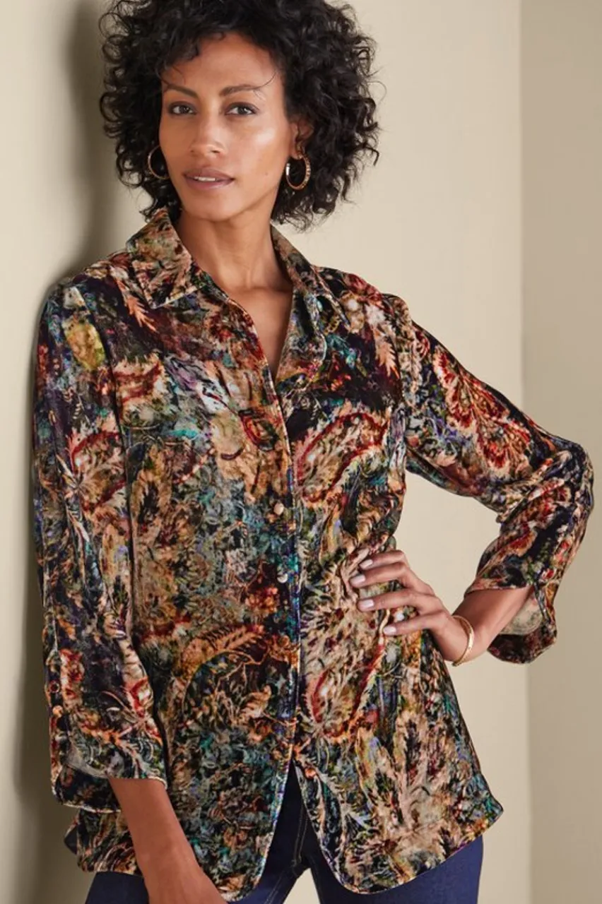 Hot Icon Silk Velvet Poets Tunic Shirt Tops