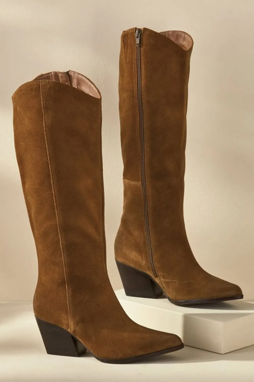 Blaze style trails in edgy, knee-high leather boots with an easy on-and-off side zipper and 2.5” heel. Worn with leggings, a knee-length skirt or under a maxi dress, they’re sleek and chic and will have people asking, “Where did you get those boots?”