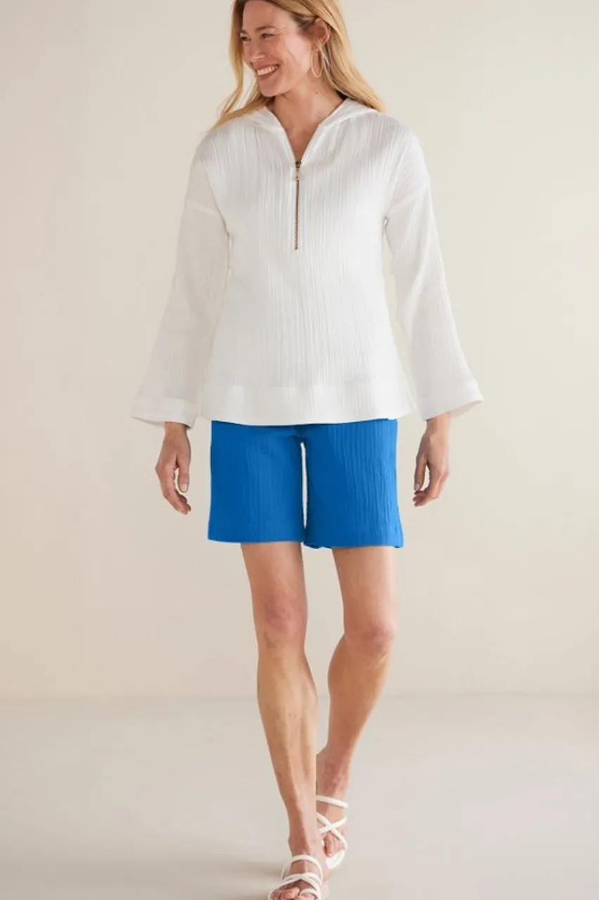 Pull-on shorts in light and airy bubble gauze? Say no more! Bonus? Pockets! Ready for the beach and beyond.