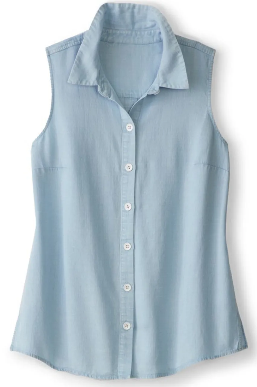 This tank moves and drapes beautifully with soft and lightweight TENCEL™ Lyocell fabric. Complete with a classic button front, collar and curved hem. TENCEL™ is a trademark of Lenzing AG.