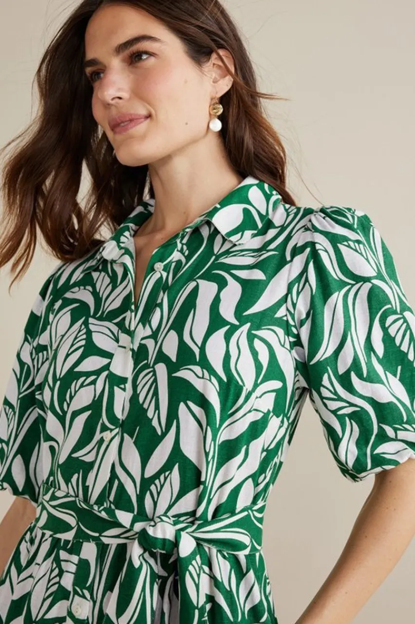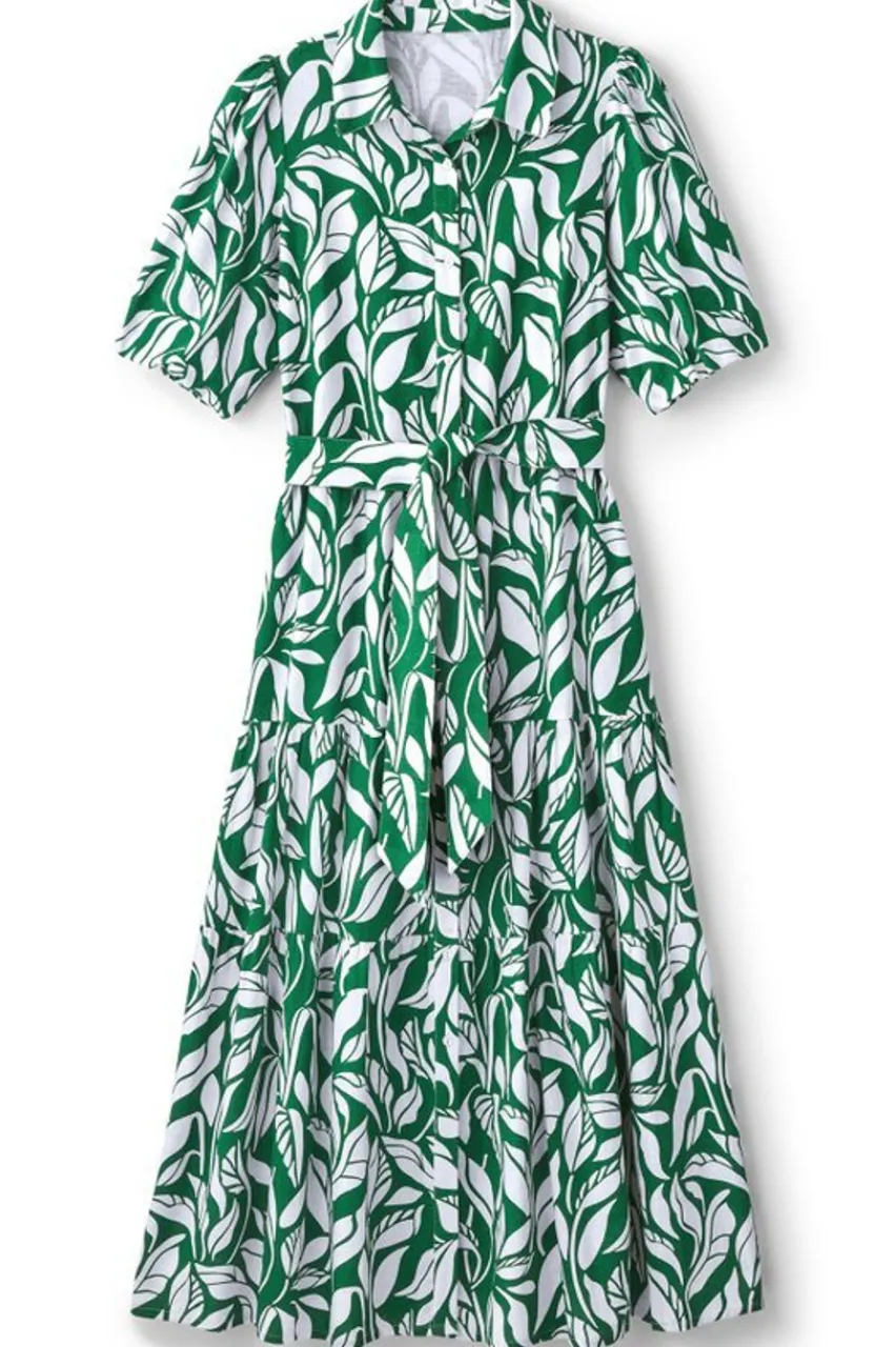 Not your ordinary maxi dress! First, it features tiers on tiers. Second, the shirt collar with full-button front. Third, the short puff sleeves. Fourth, removable belt. And finally, POCKETS! The lightweight, drapey linen blend makes it a great choice for warm weather. Just add your favorite shoes and accessories!